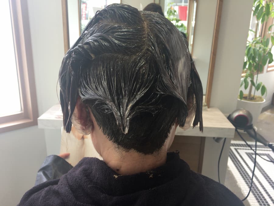 発色した染料の分子は結合して元より大きくなるという性質があるそうで、髪の内部に浸透した後は閉じ込められます。