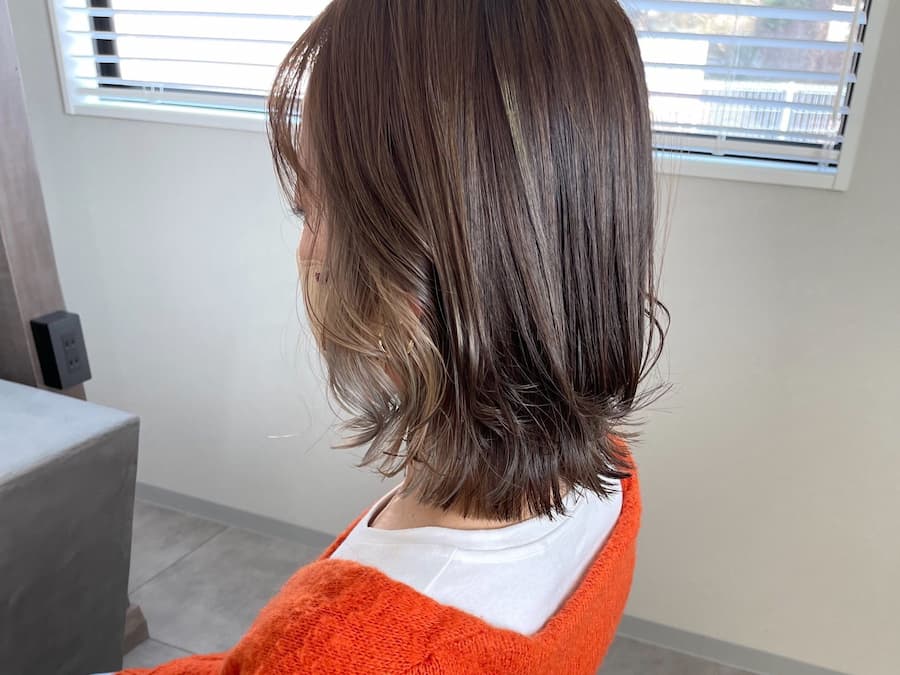 オリーブブラウンベースにグレージュのインナーカラースタイル | ヘアカラー | bex journal