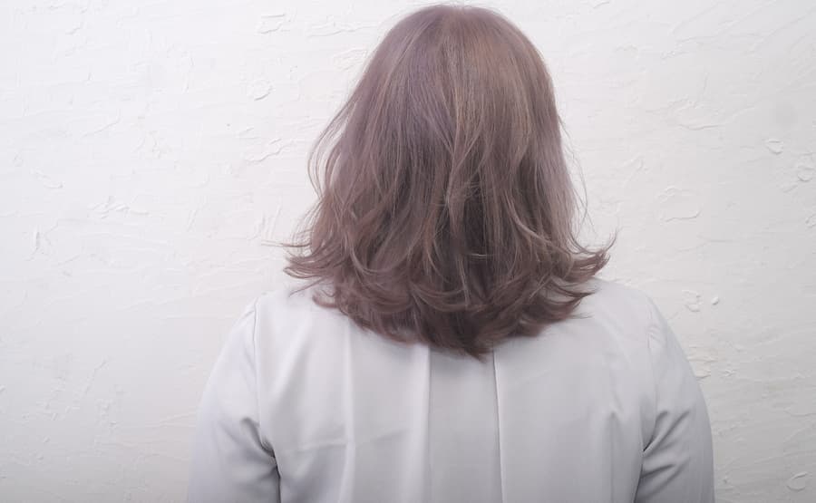 褪色したお客様にロイヤルパープルで染めるとこんな感じ