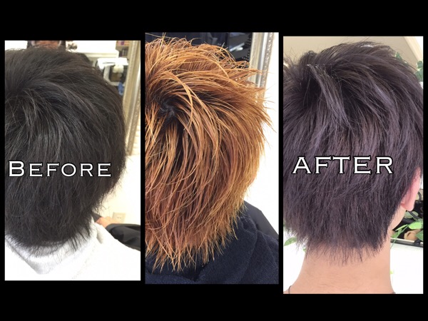 男性の髪の毛はしっかりしてる方が多いのでブリーチすると黄ばみが強く残ります。
