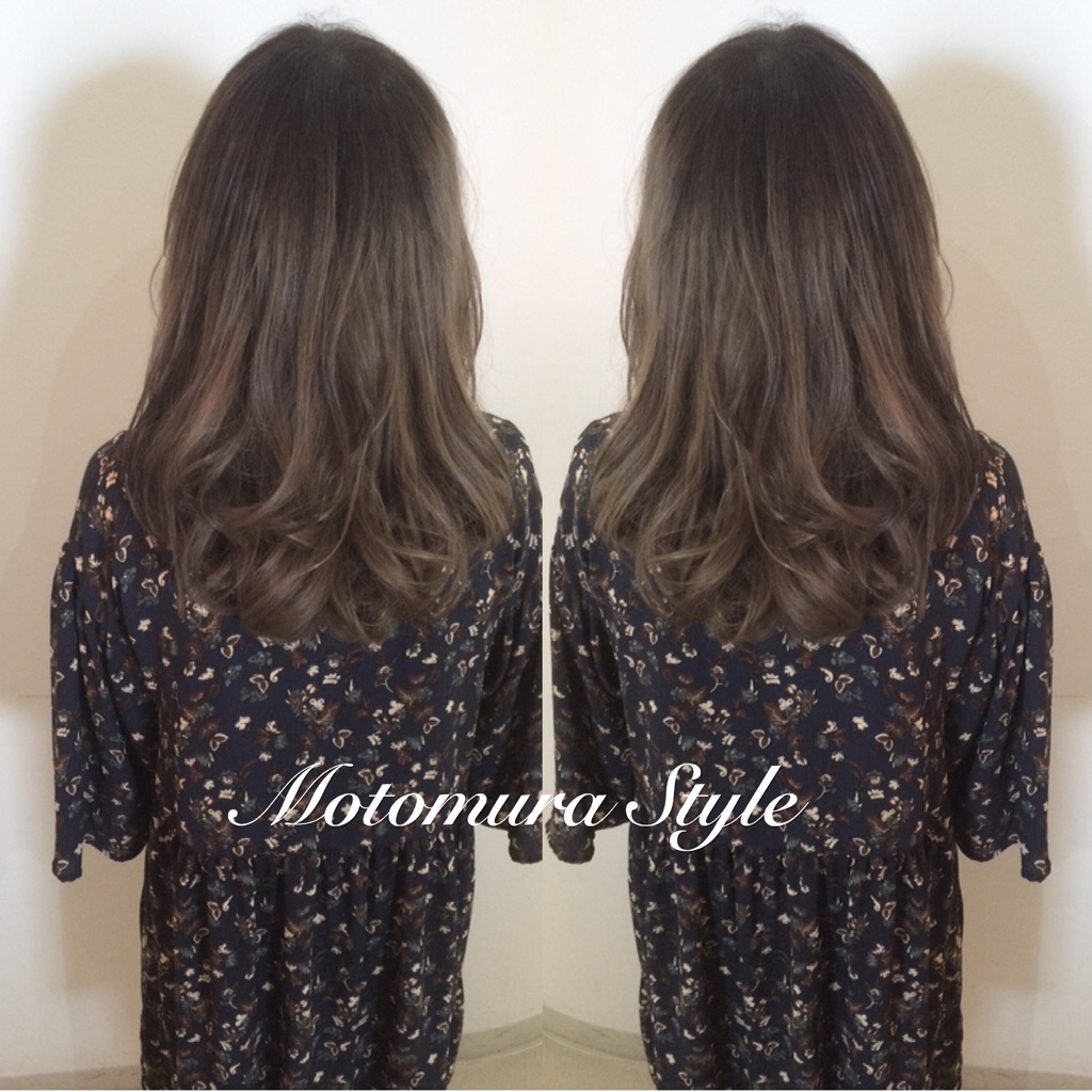 根元暗め〜毛先は赤みを抑えたベージュ系をオン。表面は立体感を出したいのでウィービング(細く筋状に色を入れる事)を入れています。ちなみにローライト(元の髪色より暗く色を入れる事)