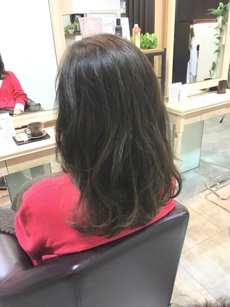 濃いモノトーンアッシュで重厚感のある髪色が楽しめます。