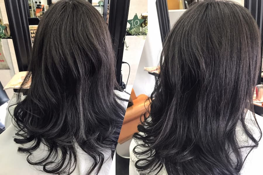 特に髪が動いたとき、光が当たったときに黒髪のときは難しかった抜け感がでるようになりました。
