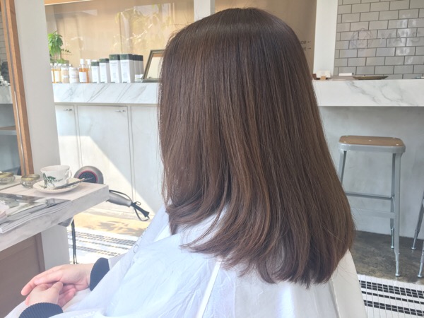 お客様は髪の長さはキープしたいのと、柔らかな色味が好みであまり重くは見せたくないそうです