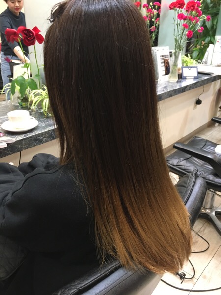 根本の黒い毛が伸びてきていて、そこを染めないで馴染ませるカラー。