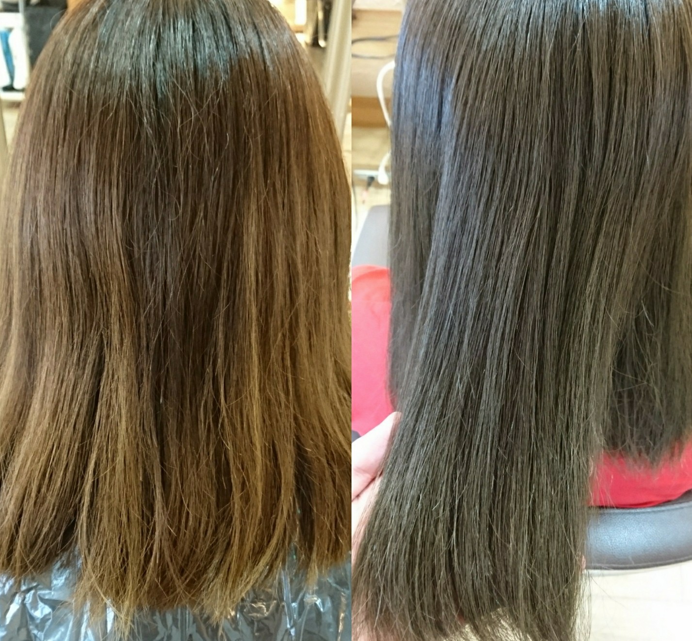 ハイライトやグラデーションを一色に戻したい時もこの方法で染めます。