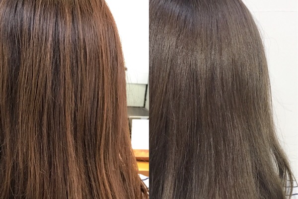 オレンジ味が綺麗に消えて綺麗なアッシュ系の色味になりました◎