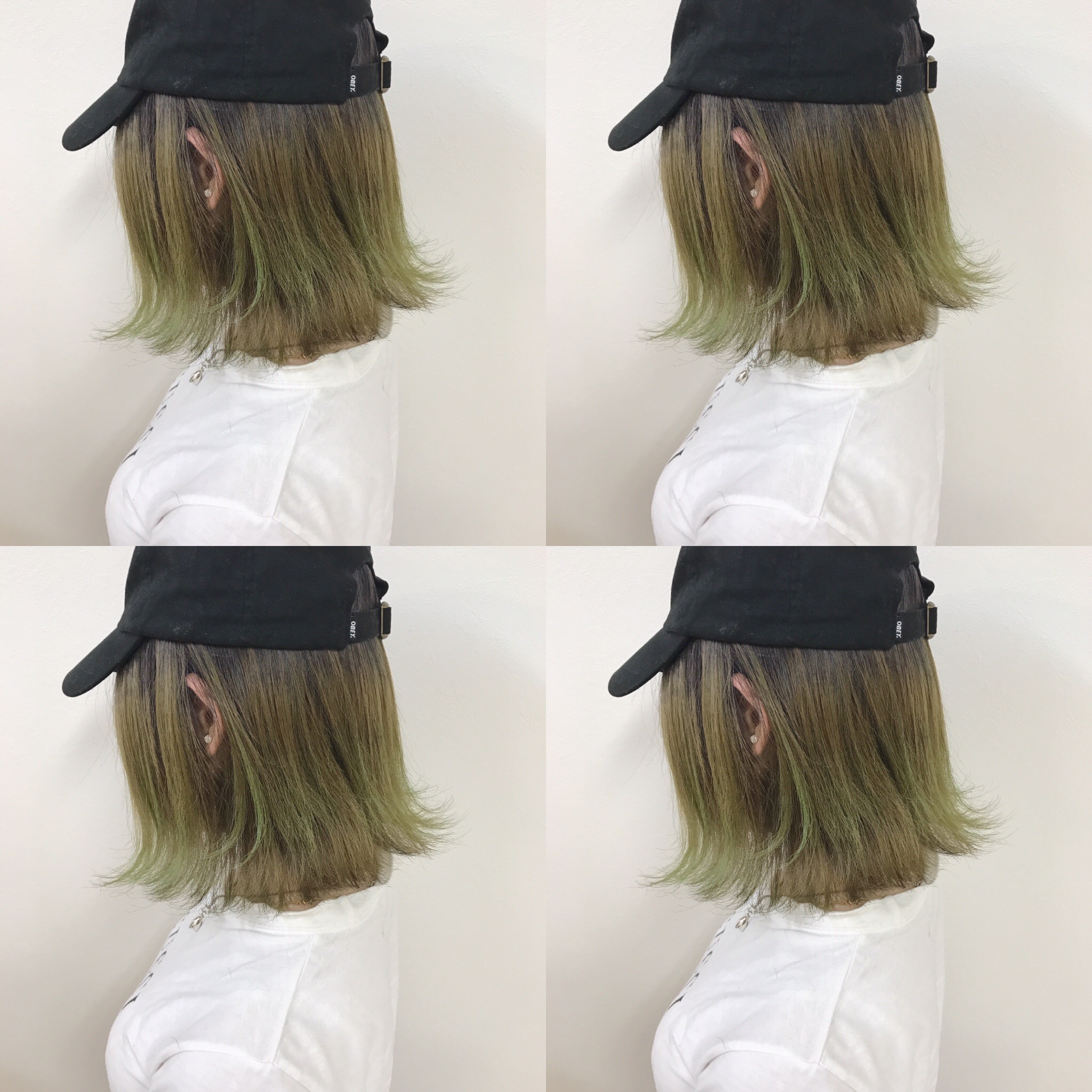 根元付近も落ち着いて毛先には鮮やかにカーキが