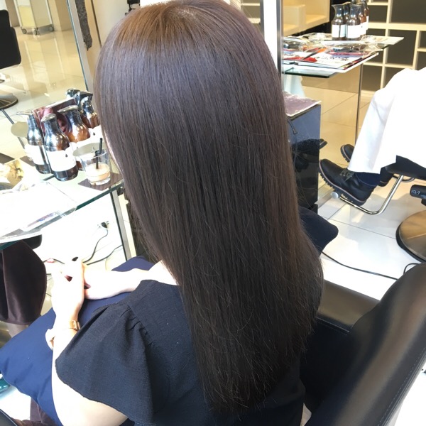 クリアを入れることで明るさを保ちつつグレイジュに染めることができます。