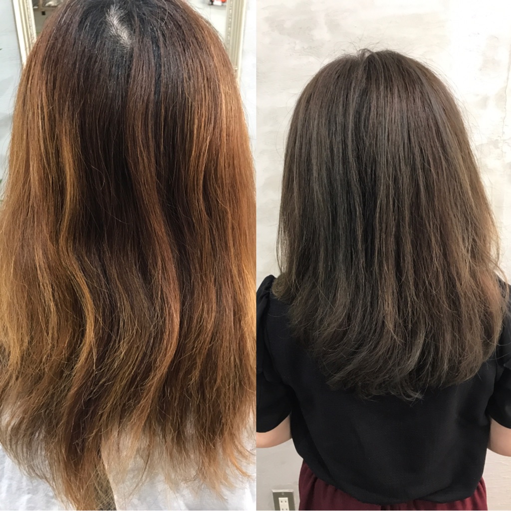 わりと定期的に縮毛矯正をかけらるというお客様。【透明感のある外国人風のアッシュ】をご希望です。『ブリーチは必要であればして欲しい。』というオーダーだったのですが