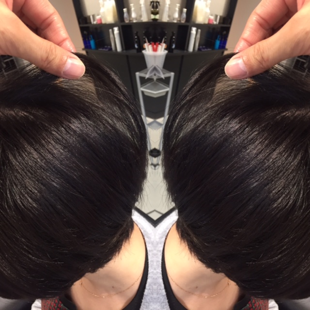 前回、前々回とブリーチしている髪をナチュラルな黒髪に!