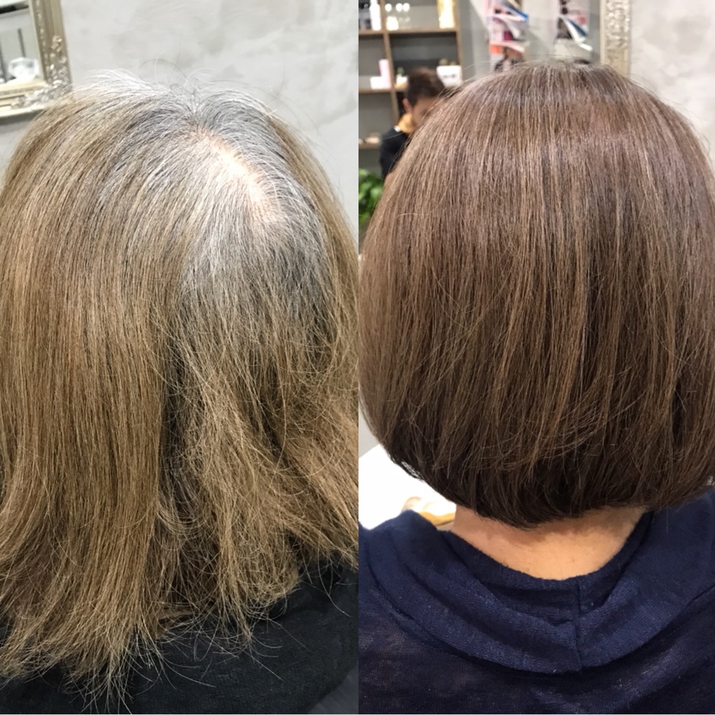 むしろ白髪を活かして綺麗な透明感のあるベージュ系を楽しんで貰っています。