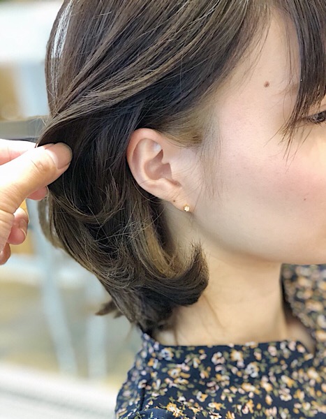 耳にかけた時にチラッと見えるさりげないイメージで低めに入れていきます