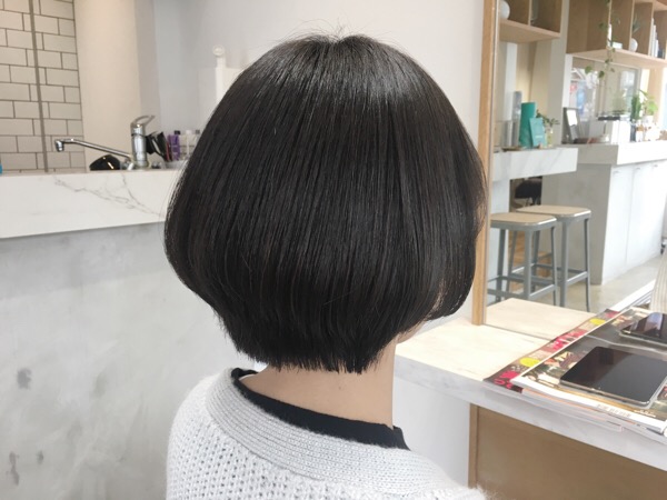 カットで出してコロンとした丸みを演出しつつ、グレージュカラーで柔らかく仕上げていきました。