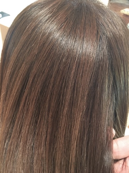 こちらの方はもともとある程度赤みをもった毛の状態だったので、グレーっぽくなるまでの発色はしませんが、