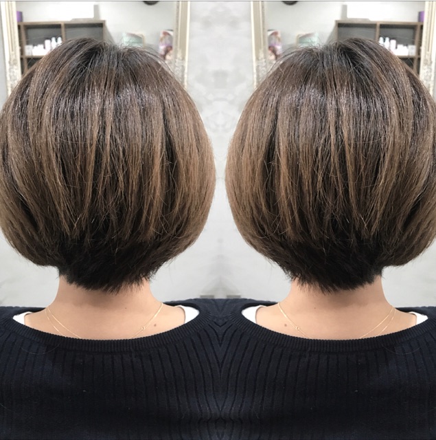 襟元の長さは変えずに『後頭部に丸みが出るようにくびれ』を作ったスタイル。