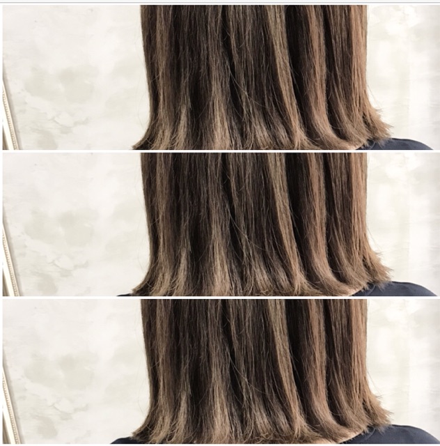毛先が少し『スカスカ』になっている状態なので厚みをしっかり、まとまりやすい長さで綺麗にカット!ここが1番重要です。