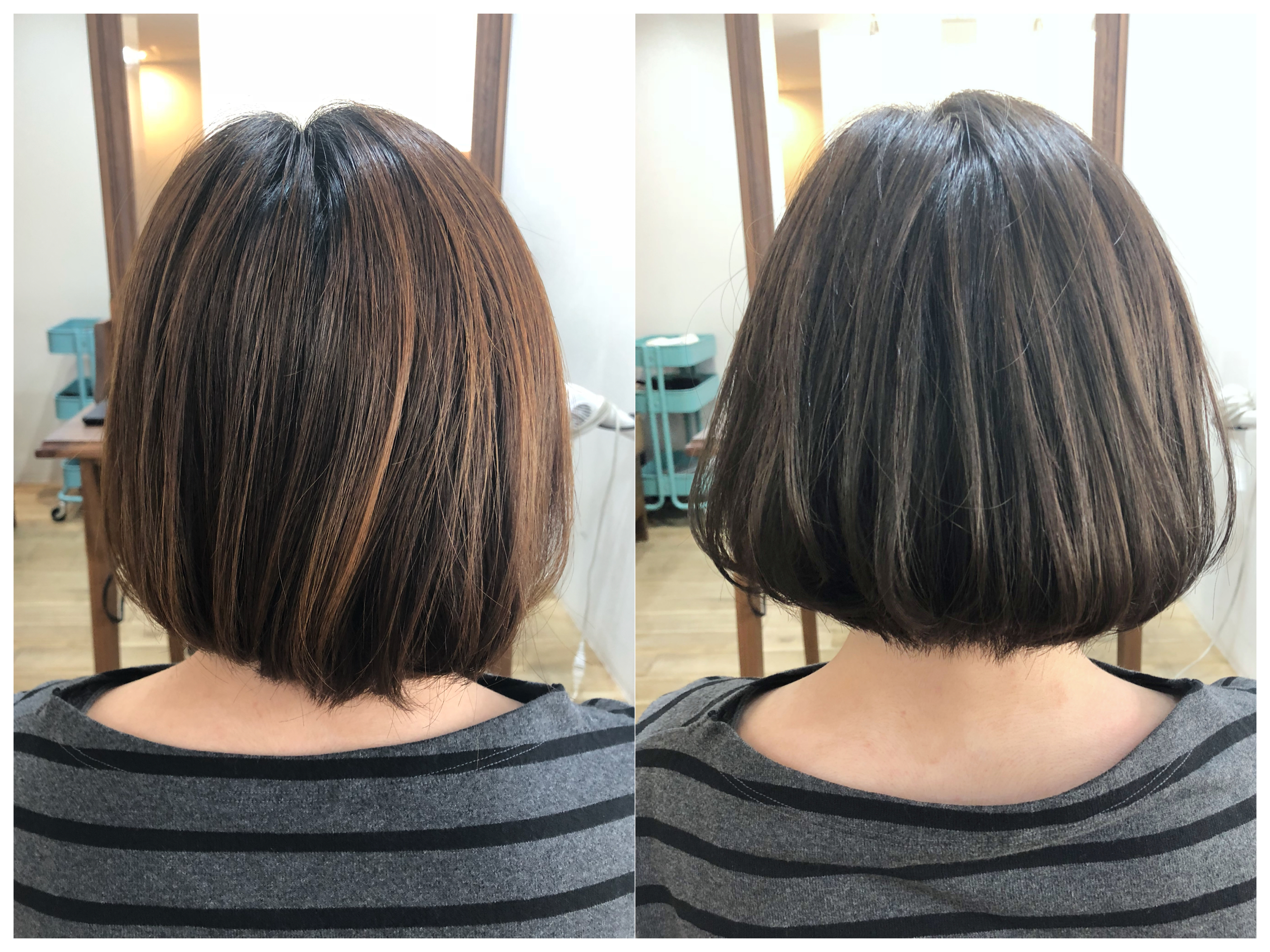 どうしても一度のカラーだと赤味が出やすい根本もこんなレシピなら一発で赤味を覆い隠す事ができます。