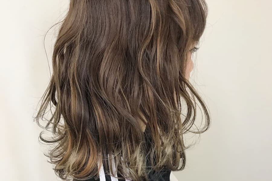 今回はバレイヤージュと細目のハイライトを使った