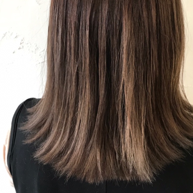 毛先はブリーチがされてあり黄色みがある明るめになっています。