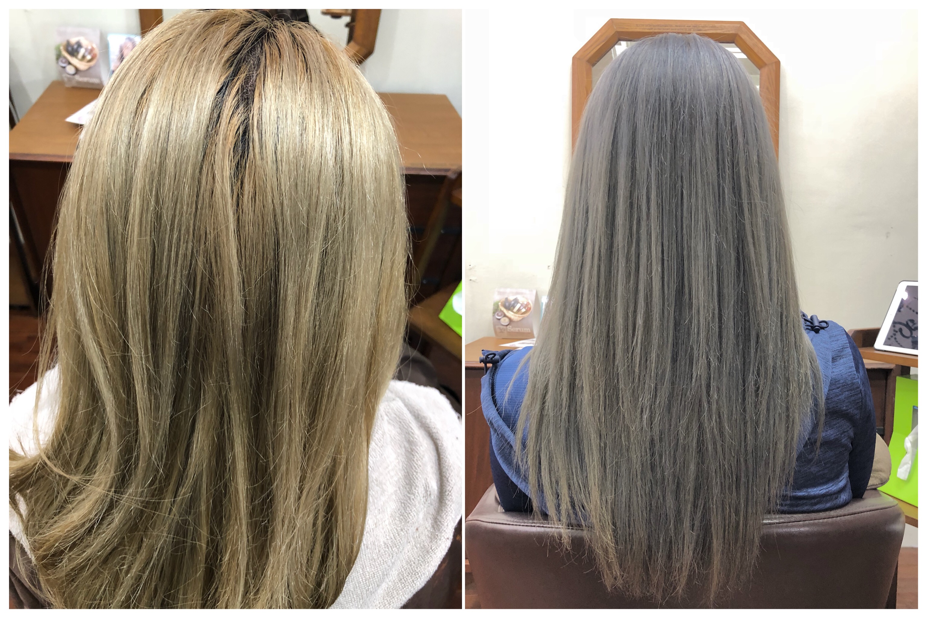 前回のカラーから1カ月なので、毛先はまだグレーの色味がうっすら残っています。