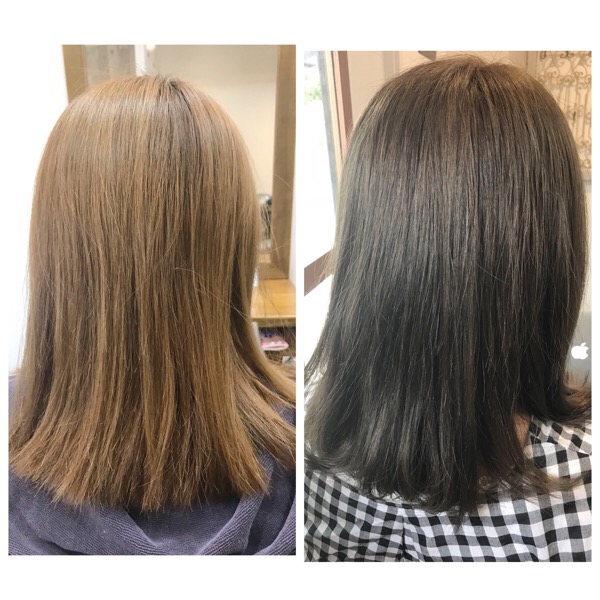 過去のカラーでアッシュ系を続けることで抜けた時に赤みが少ない状態で色抜けしてくれます。