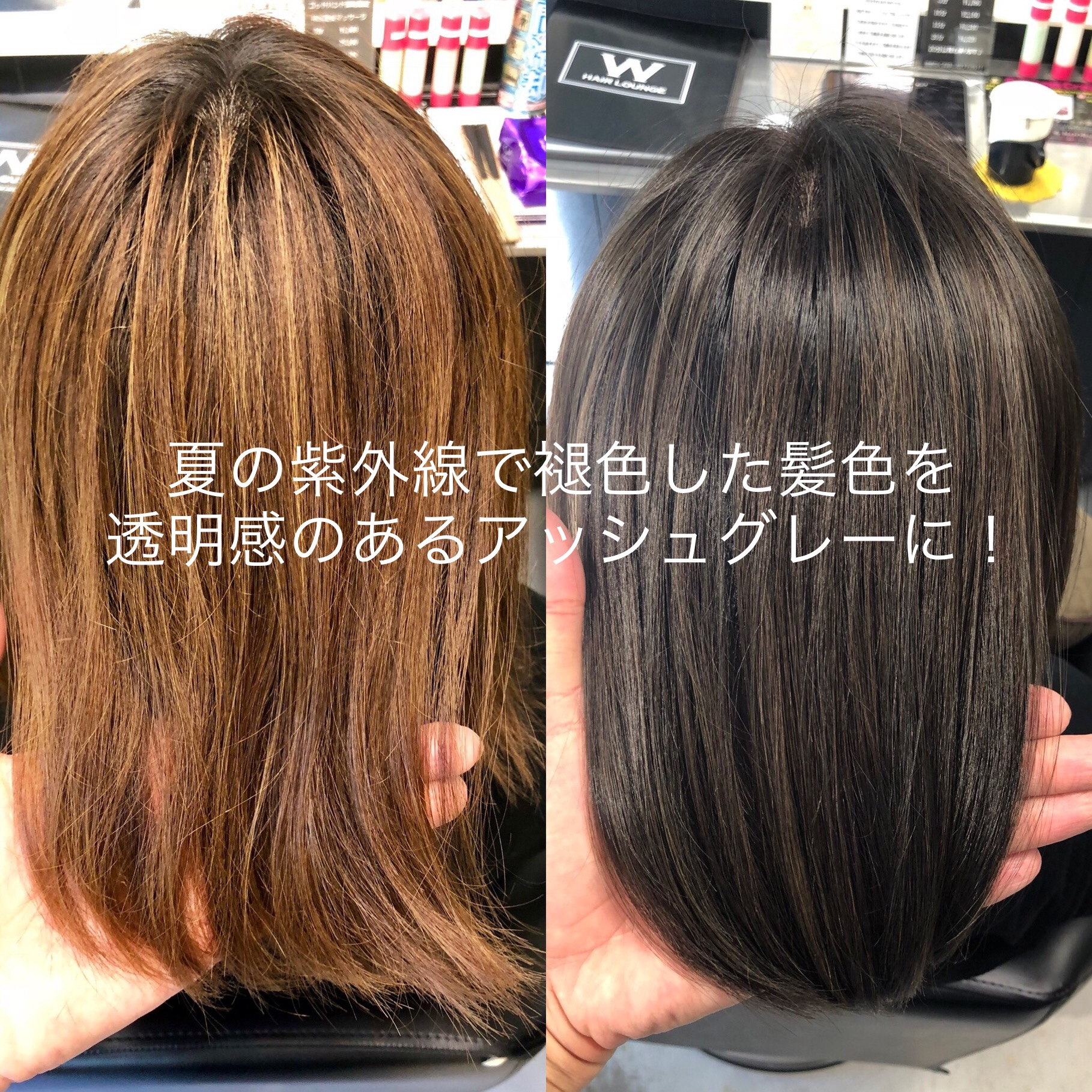 今回はそんな褪色した髪を綺麗なアッシュグレーにカラーチェンジしていきます。