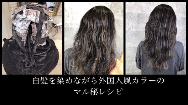 今回は最近特に多い白髪を染めながら外国人風カラーにしたい方にオススメの染め方。