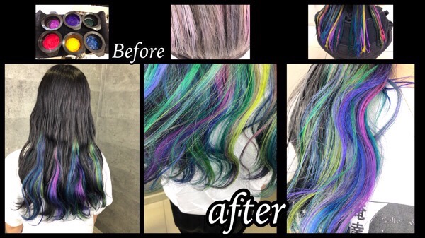 アッシュグレーがシルバーっぽい感じに透けるので鮮やかカラーと相性抜群!
