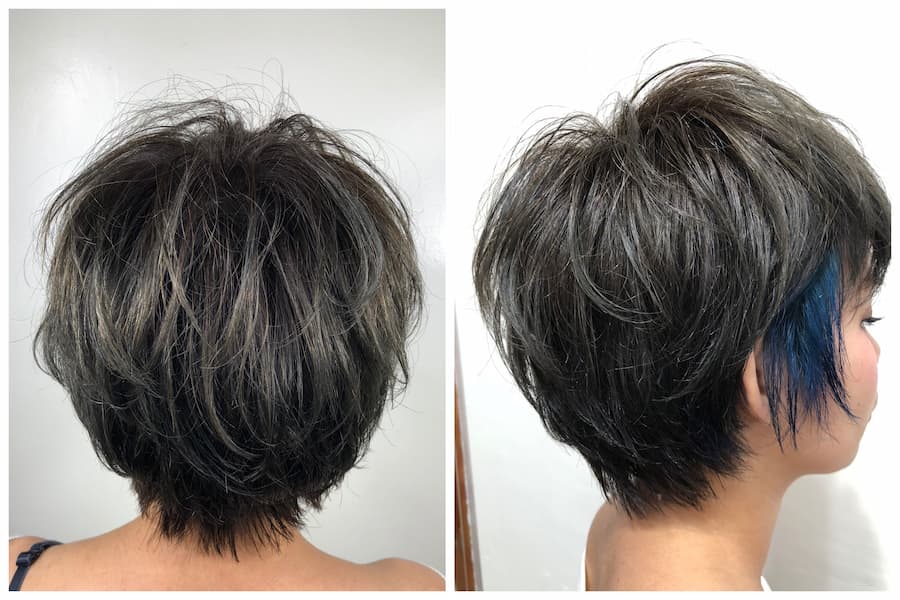 自分がカラーをする時は大体ブルー、スモークは混ぜますが、ブルー、スモークの明度は6レベルぐらいなので、混ぜて暗くなりすぎないように、今回は8レベルぐらいのグレージュになるようにしています!