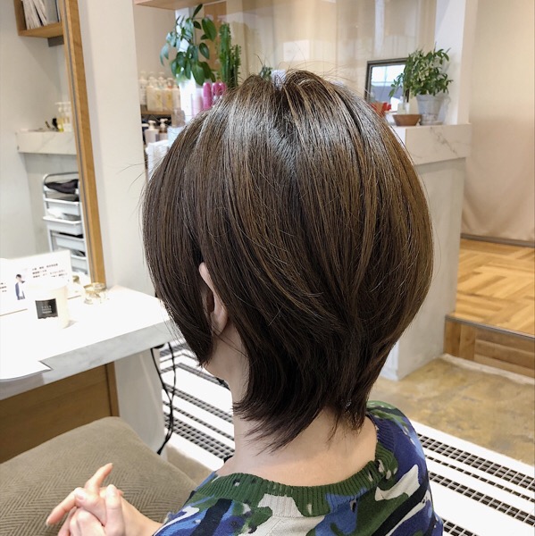 カットは襟周り残し気味のひし形ショートウルフにしていきます。