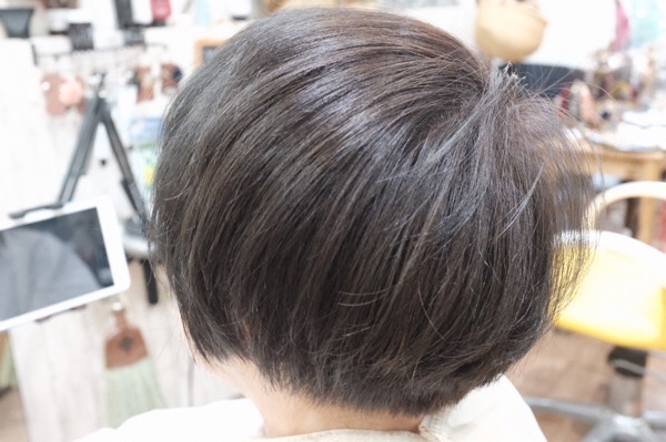 ただのアッシュではなくグリーンを入れる事により褪色しても毛先の色合いが綺麗で白髪と馴染みやすいのと、染めた時の艶と色の出方がカッコいいのが特徴かなと思います。