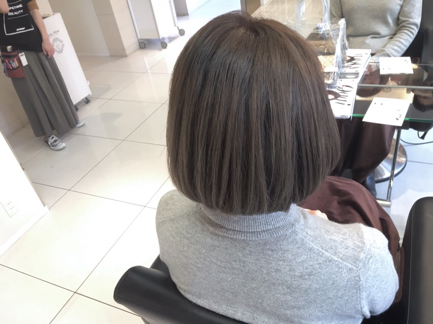 秋の終わりに、マットなカーキ系のグレージュはどうでしょうか。