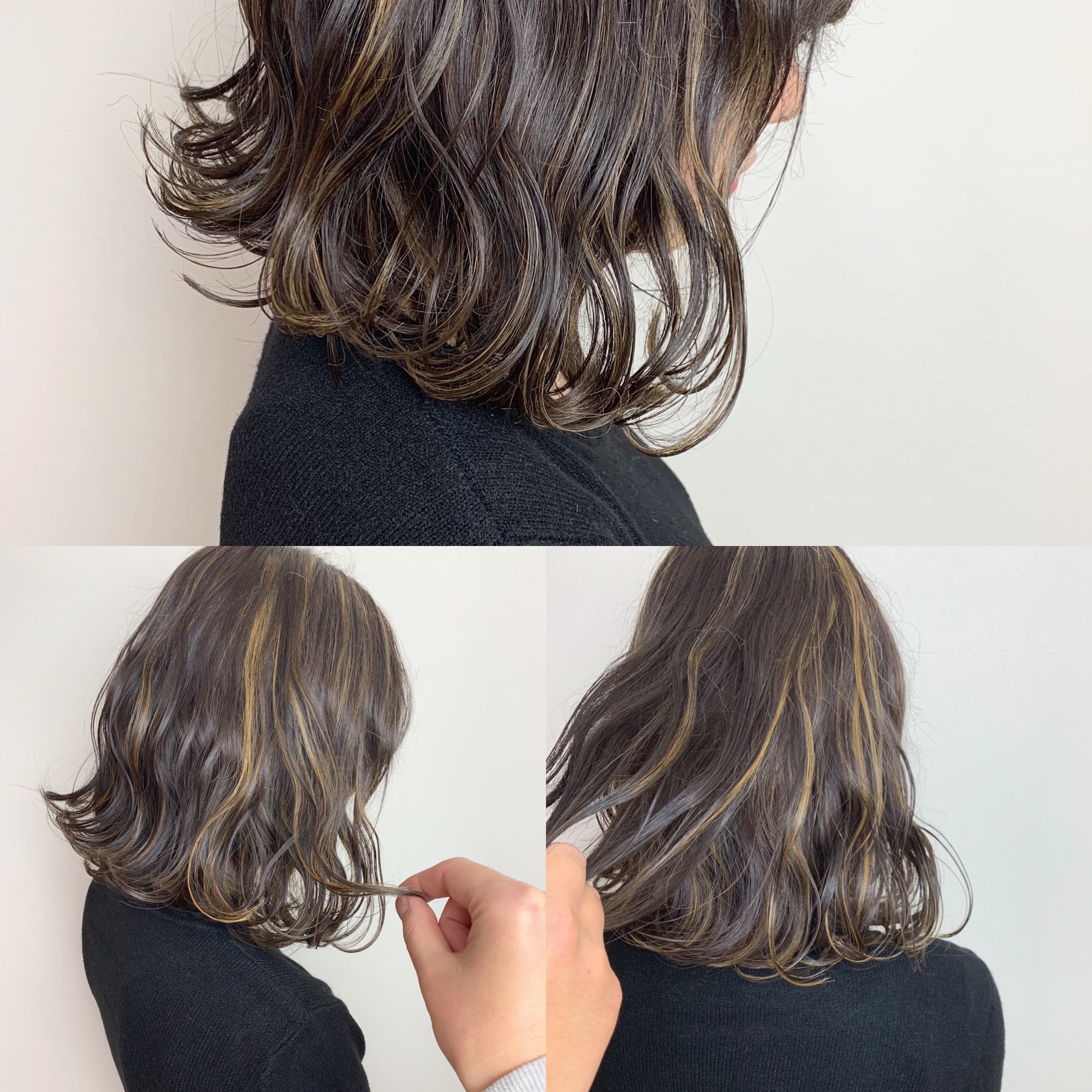 今回はダークチョコみたいな濃厚グレーアッシュをベースに細目のハイライトの束が可愛い