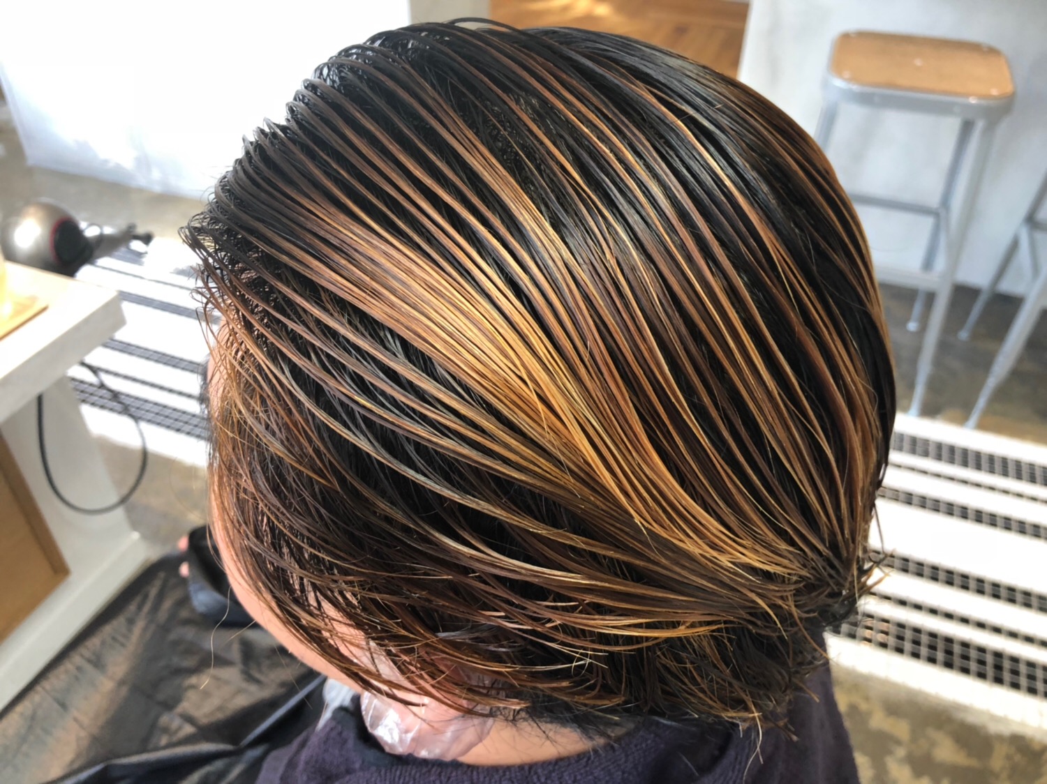 そのせいもあって、薬剤の明るさによっては塗り分けたりしないで一気に塗布した場合は毛先より根元の方が明るくなってしまうケースもあります。