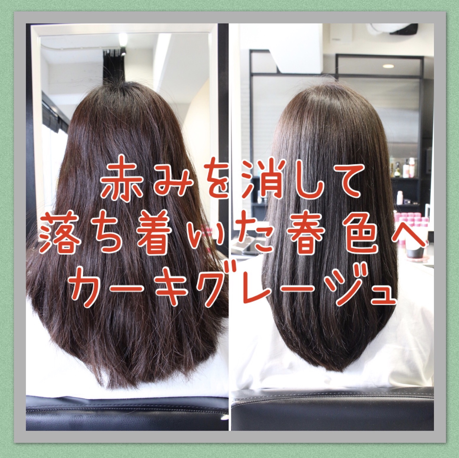 【赤み抹消カラー】大人の落ち着いた春色にカーキグレージュを☆