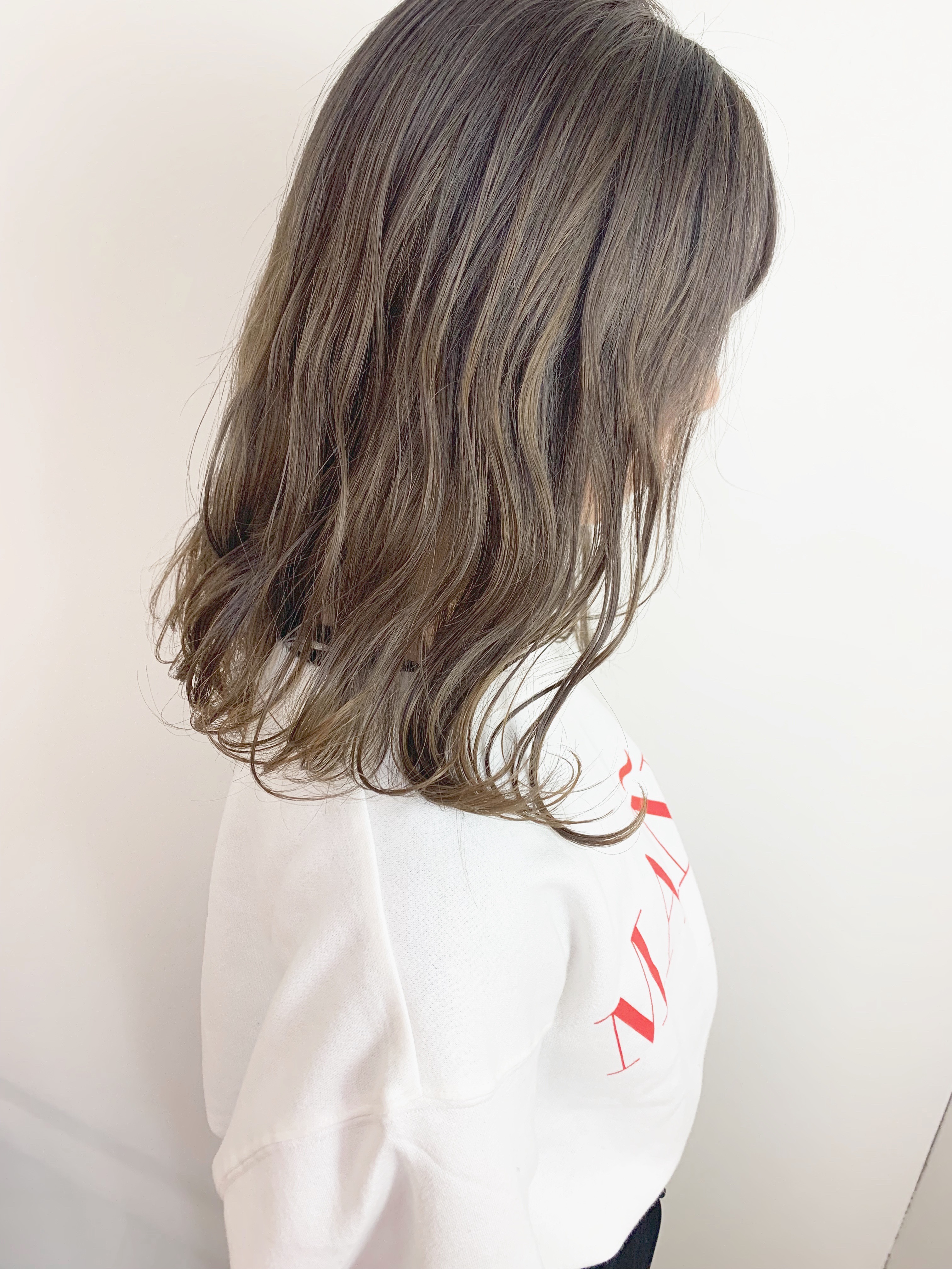 初カラーでブリーチ1回からのミルクティーベージュのヘアカラー