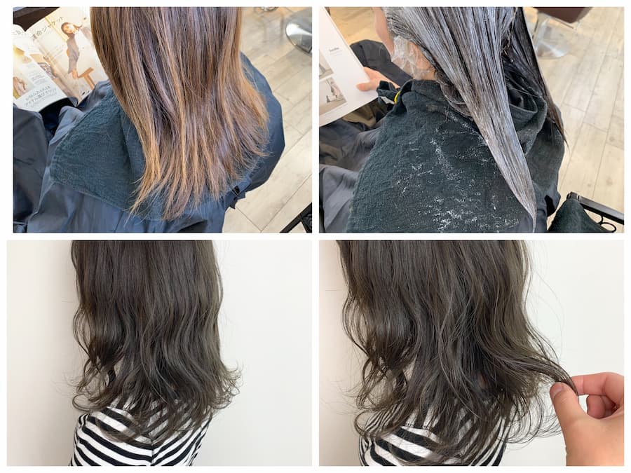 スロウのブルーを使ってつくるオリーブブラウンのヘアカラー