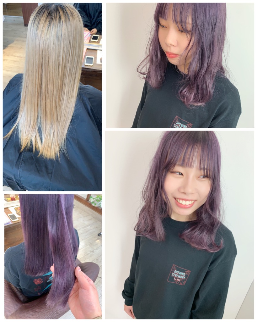 こちらは黒髪からワンブリーチ後にバイオレット系で染めて2カ月くらいの状態です