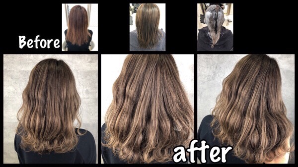 ブリーチではなくカラー剤で赤味をへらします。