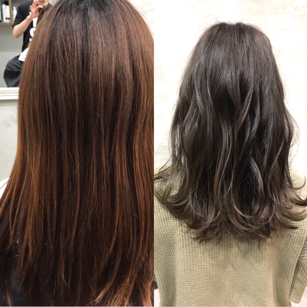 オレンジ感がかなり強い所からの→グレージュ系カラーです。