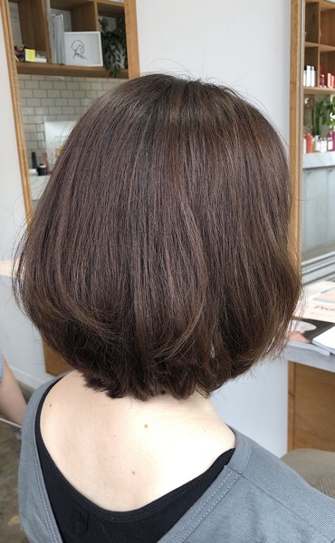 また生え際に少しだけ白髪があるので、8gだけコンフォートで染めて上から重ねていきます。