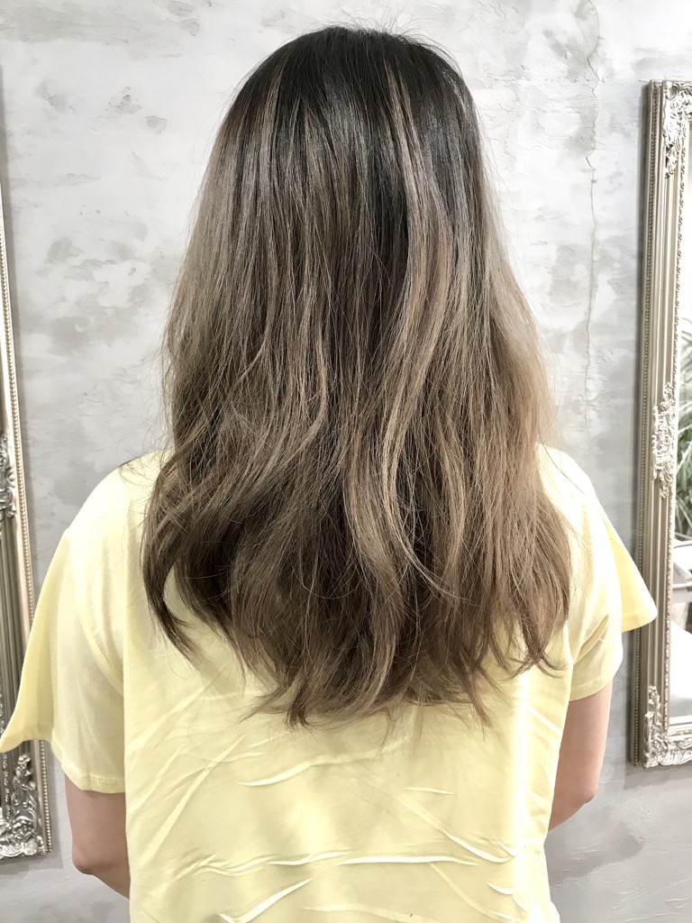 【カラー配合】 根元 A/6:smoke 1:1 毛先 White:V/6:V/10:smoke 10:1:1:0.5