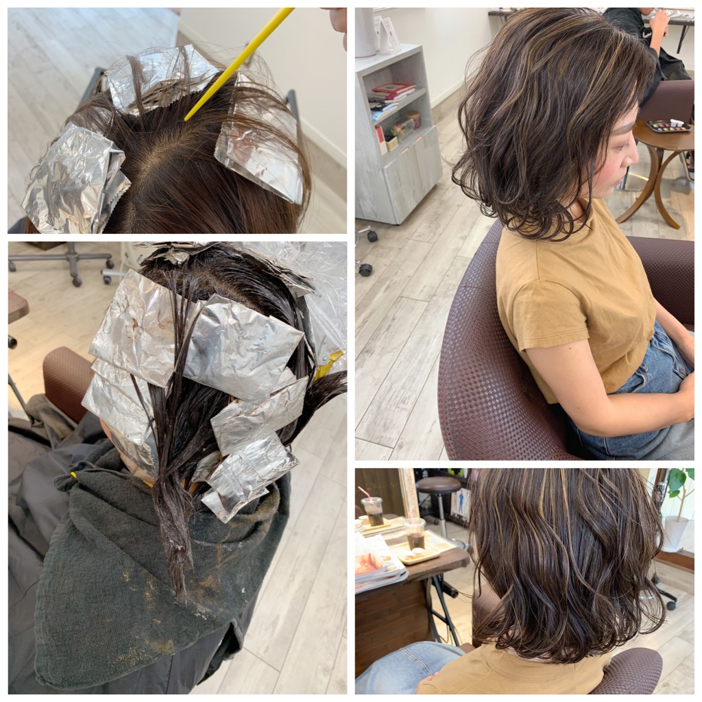 ハイライトはあえて上がりすぎないブリーチを使いました