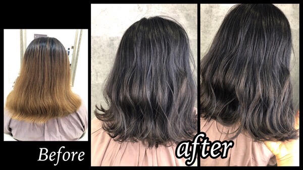 ブリーチ履歴などがある場合は 少し濃いめに染めることで退色も楽しめるカラーになります!