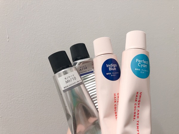 今日はパーフェクトシアンとインディゴブルーをミックスして中明度でもしっかりと赤みを消して透明感のあるグレージュを出していきましょう。