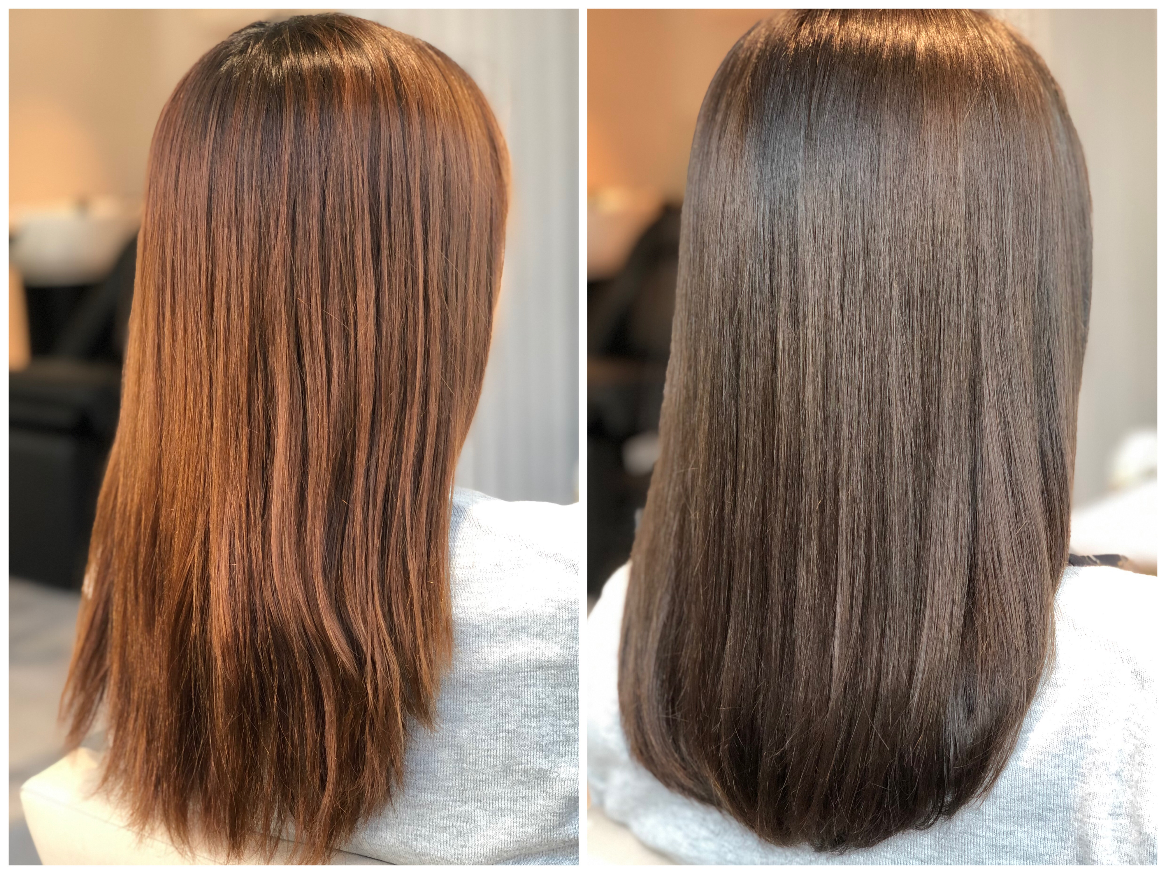 今までならあまり暗くしたくないけどオレンジ色に仕上がるのは嫌だという方には濃く染めることをおすすめしていました。
