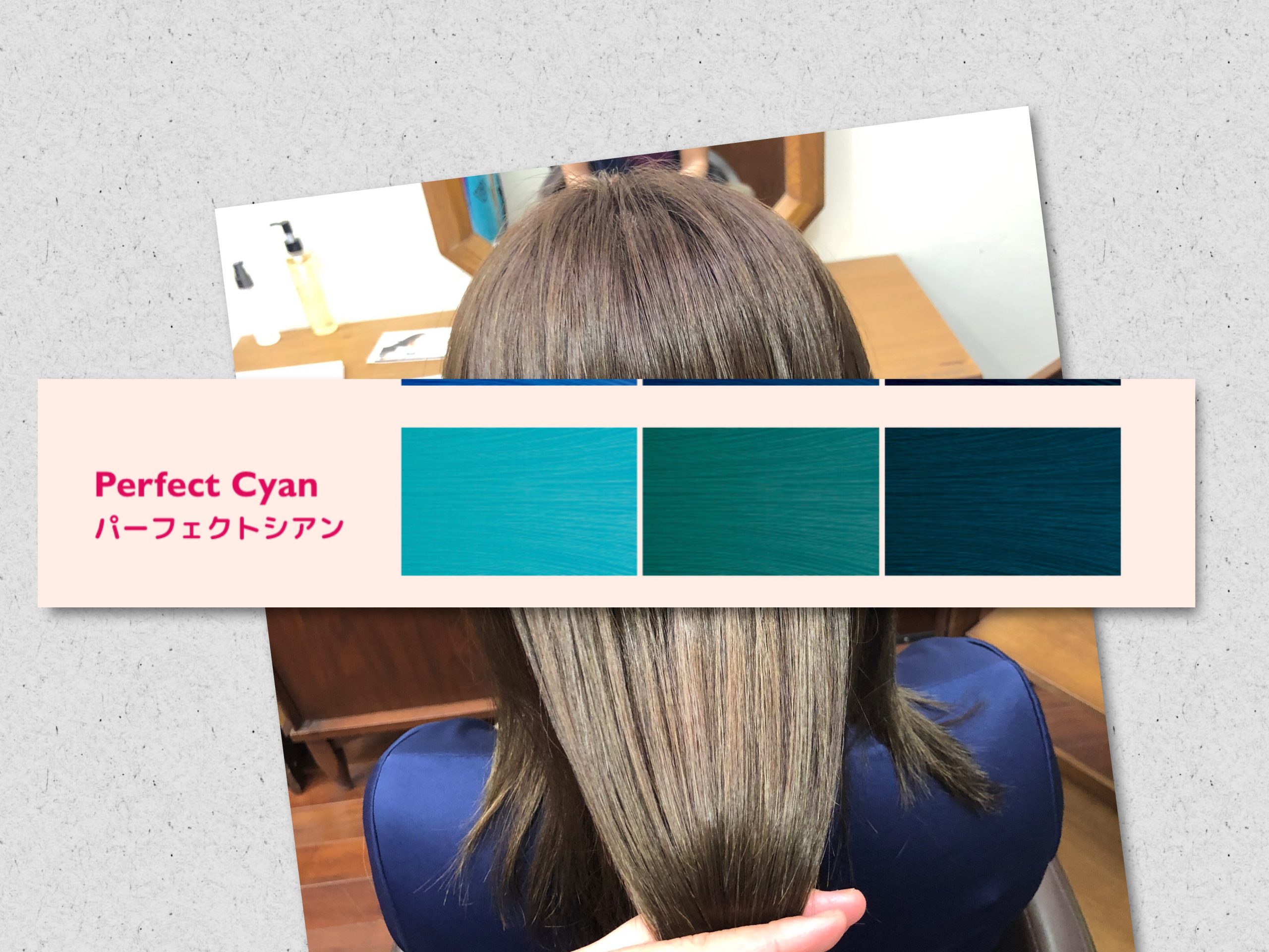 ティントバーをミックスでツヤが増し、スロウのアクセントカラーより透明感があります!インディゴブルー、サワーグリーンだとちょと濃いかな?って思うので、ハイトーンにはパーフェクトシアンで赤味消しに使っています!