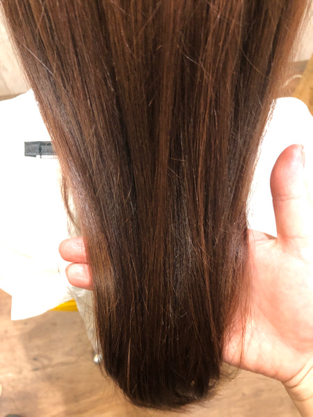 前回のカラーが褪色した髪の毛。