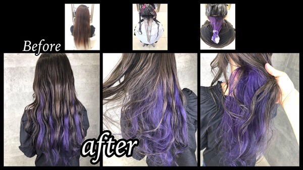 インナーをブリーチしながらベースはグレージュで透明感を。